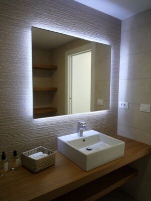 .-Los materiales son de líneas puras y frescas con colores cálidos que serán los que sigan en el resto de la vivienda.