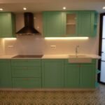 Hoy os presento una obra a la que he dedicado mucho cariño. En esta ocasión el cliente no quería una casa convencional, le apasiona el color. Así que me puse manos a la obra, tiramos la cocina que era oscura y fría. Elimine el tabique de la cocina y el del salón y lo transforme en una mampara de cristal dejando todo abierto y disfrutando de la luz que antes no tenía, disfrutando desde la entrada de un amplio salón y una cocina luminosa, el resultado final es espectacular potenciando ambas estancias jugando con la luz y la armonía. El alma de esta reforma es el color. El verde, es el color perfecto para transmitir los valores de la naturaleza y lo ecológico.En cocinas, los tonos claros de verdes inspiran tranquilidad y equilibrio. De igual modo funciona el azul, que da sensación de calma y frescura. El aseo paso a ser un baño con una atractiva ducha con hornacina retro iluminada. Los suelos son hidráulicos tanto en el baño como en la cocina. Los suelos hidráulicos dan fuerza y atractivo, son indiscutibles, ya que su mera presencia dota automáticamente de personalidad a un espacio. Eso sí, apuesta por paredes y techos en colores neutros y una decoración sobria si no quieres saturar el ambiente.